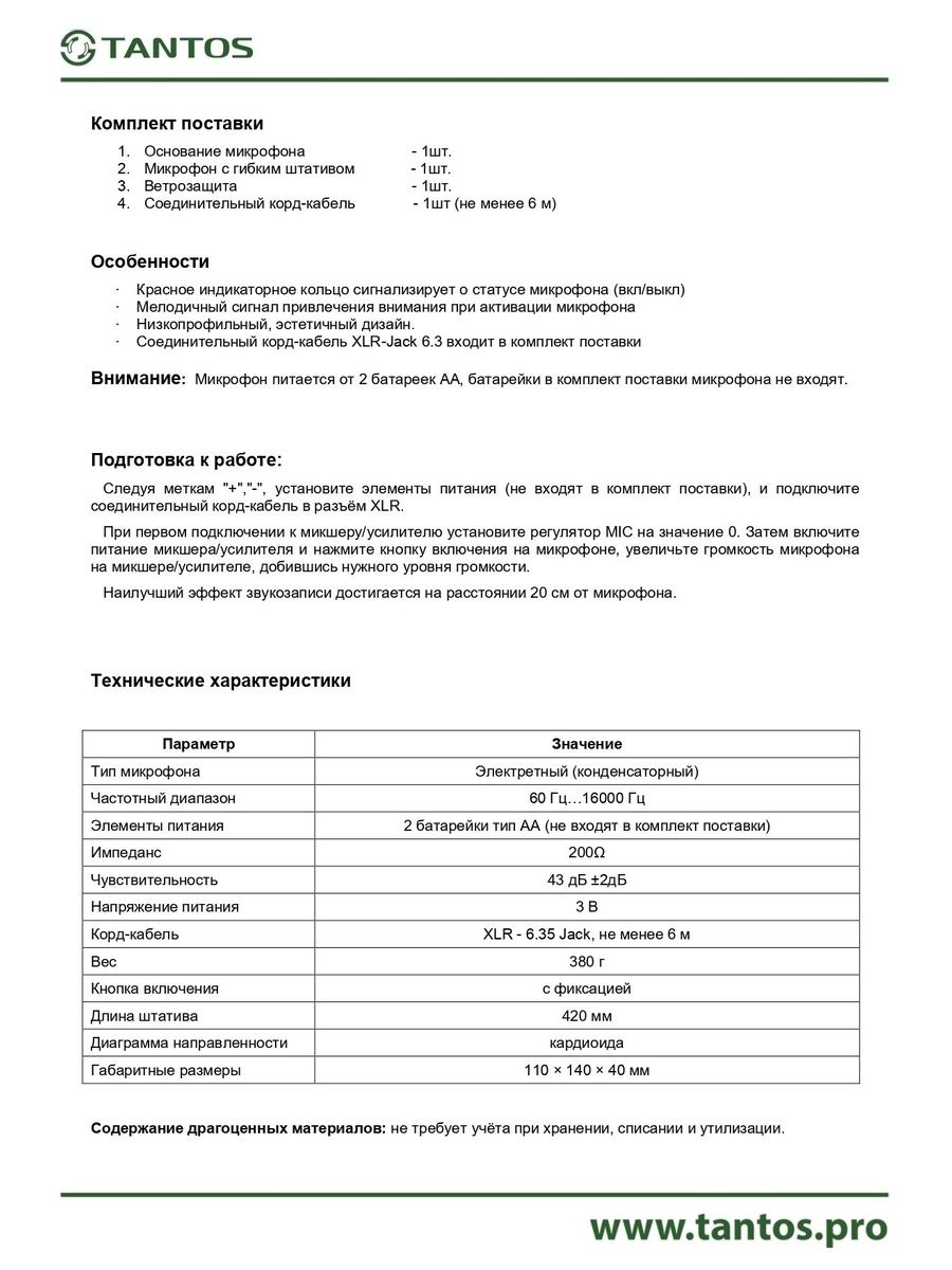Микрофон предназначен для использования в составе систем оповещения, конференц-систем, а так же систем музыкальной трансляции. Благодаря высокой чувствительности и широкому частотному диапазону он подходит для записи, а также для усиления звука.