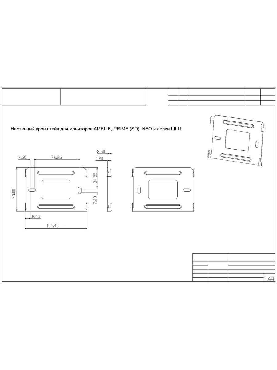 Кронштейн для мониторов Amelie, Prime (+, SD), NEO (+, GSM), серии LILU и Elly. Монтажное основание TS-BR1 производства компании Tantos.