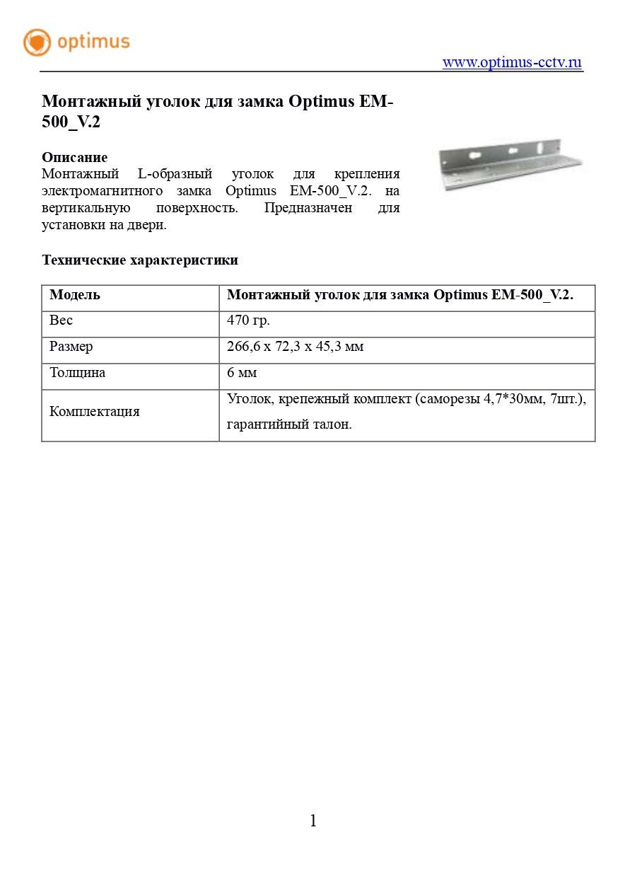 Монтажный L-образный уголок для крепления электромагнитного замка Optimus EM-500_V.2. на вертикальную поверхность. Предназначен для установки на двери.