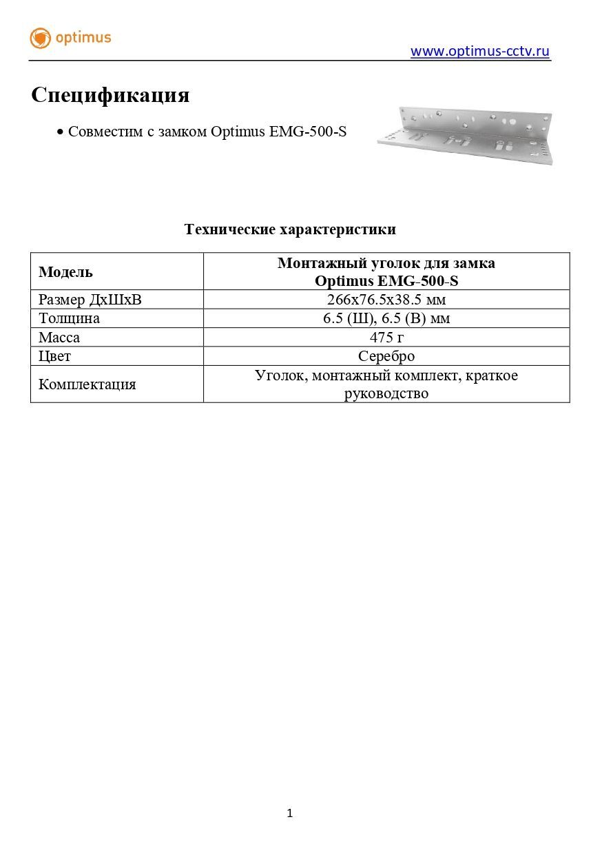 Монтажный L-образный уголок для крепления электромагнитного замка на вертикальную поверхность. Предназначен для установки на двери открывающиеся наружу. Имеет возможность регулировки положения установленного замка.*Подходит для электромагнитного замка Optimus EMG-500-S.