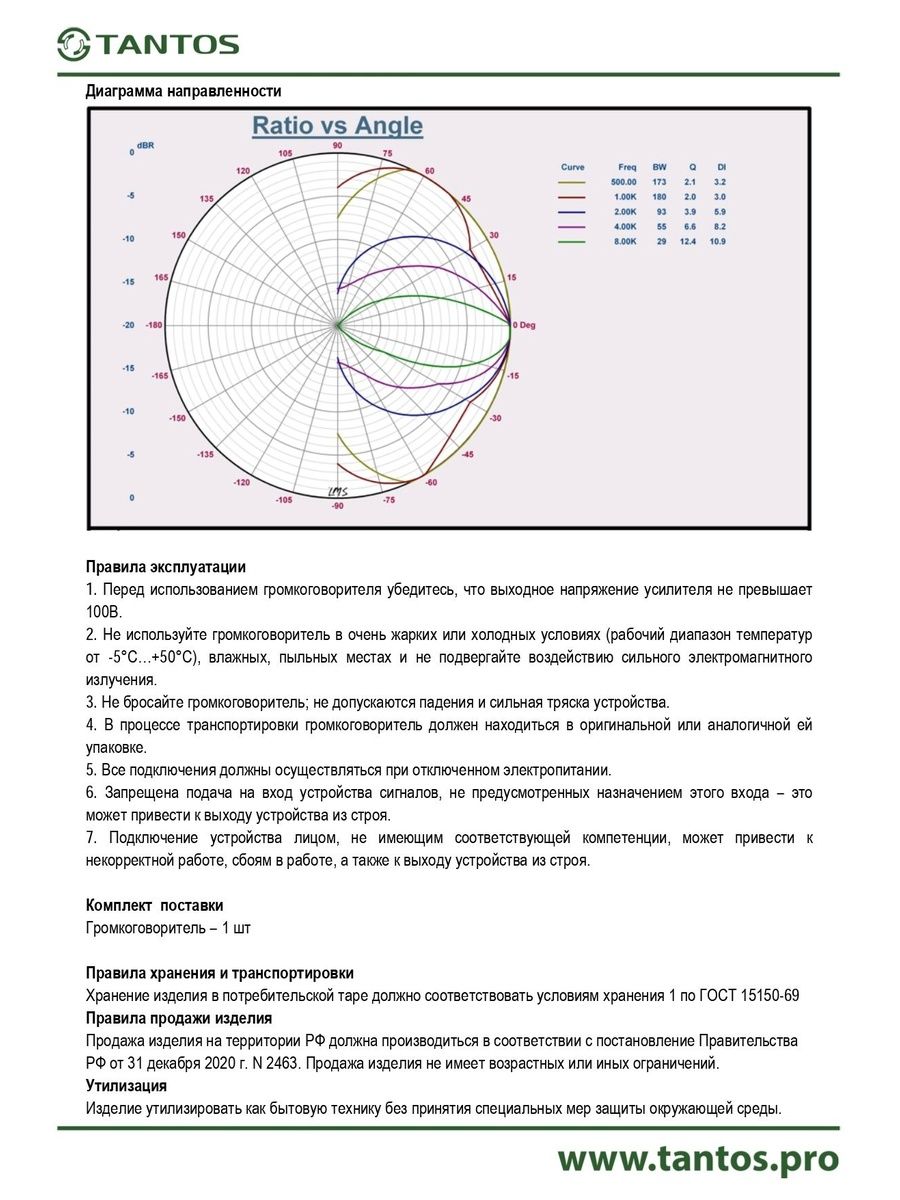 Чувствительность, 1Вт/м 92 дБ