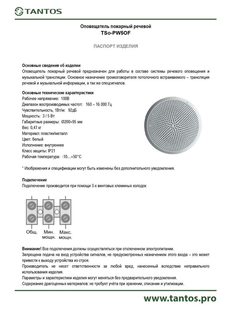 Оповещатель пожарный речевой со встроенным трансформатором. 100В, возможность выбора 3 Вт или 5 Вт, 160-16000 Гц, 100дБ, Ø200×95 мм, 0.47кг, -30..+55С, IP41. Функция контроля линий.