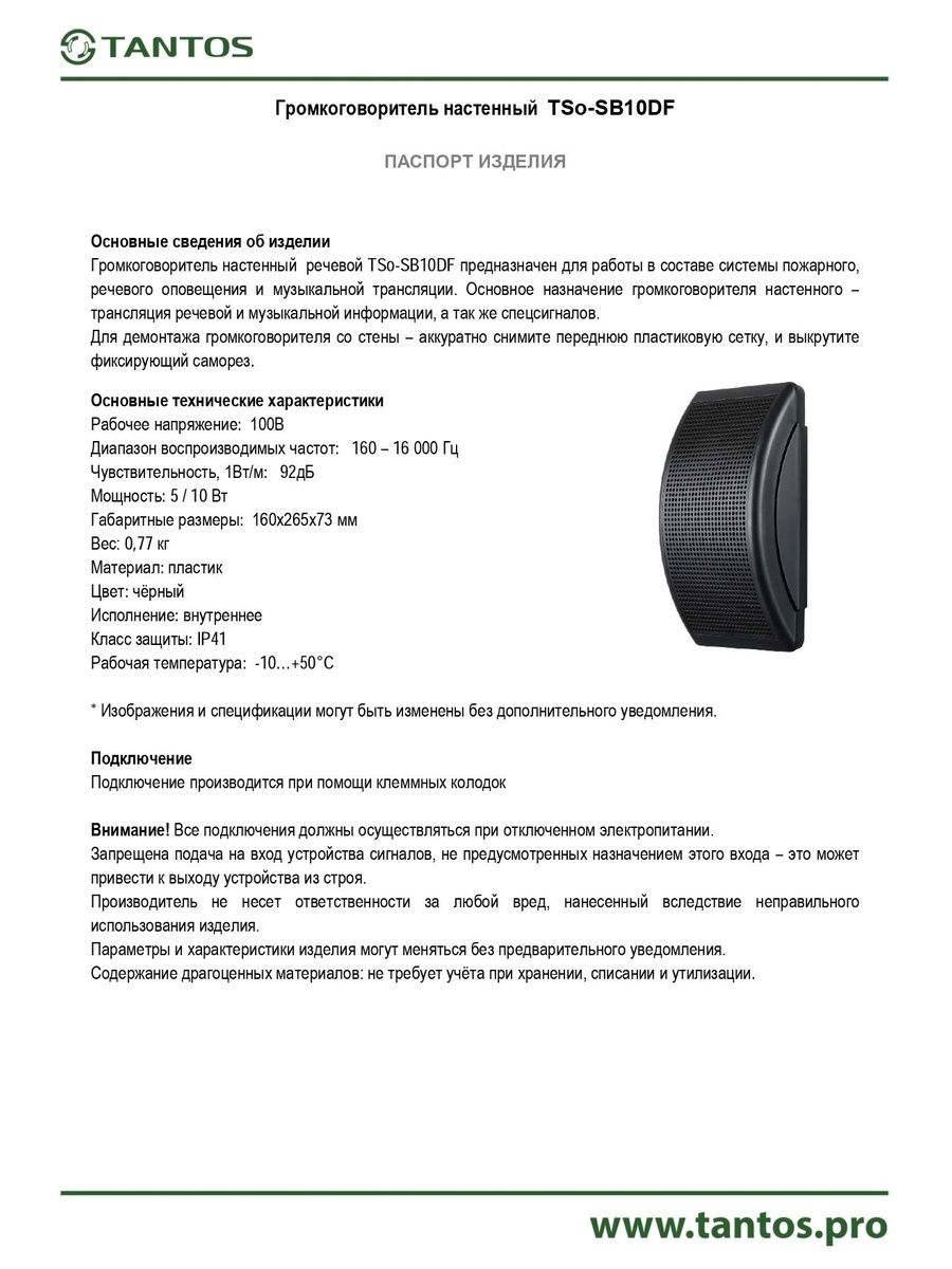 Оповещатель речевой TSo-SB10DF