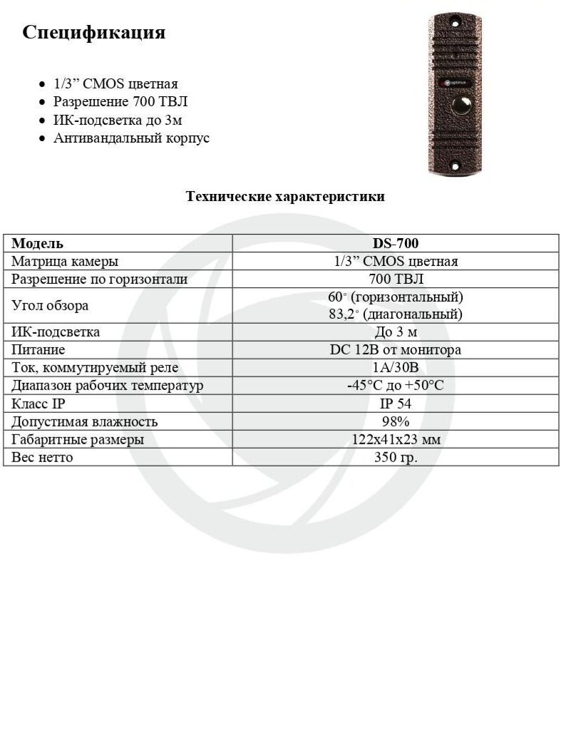 панель видеодомофона optimus ds-700