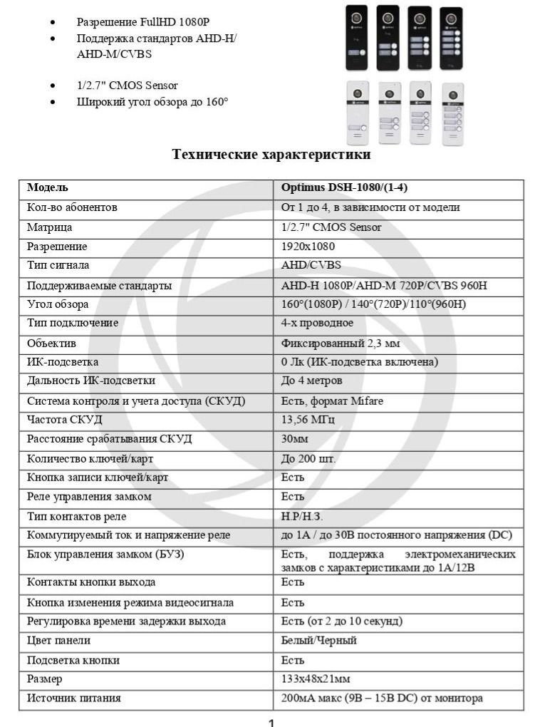 панель видеодомофона optimus dsh