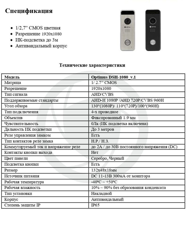 Панель видеодомофона Optimus DSH-1080_v.1 (Черный)