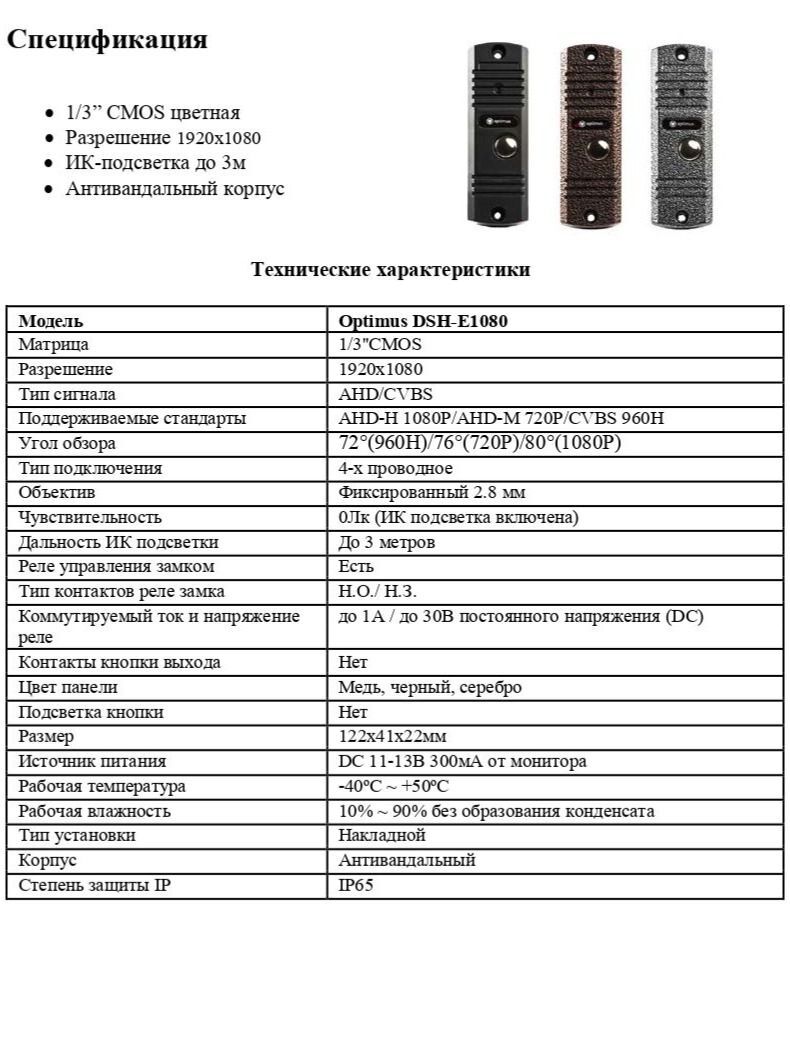 Панель видеодомофона Optimus DSH-E1080 (Медь)