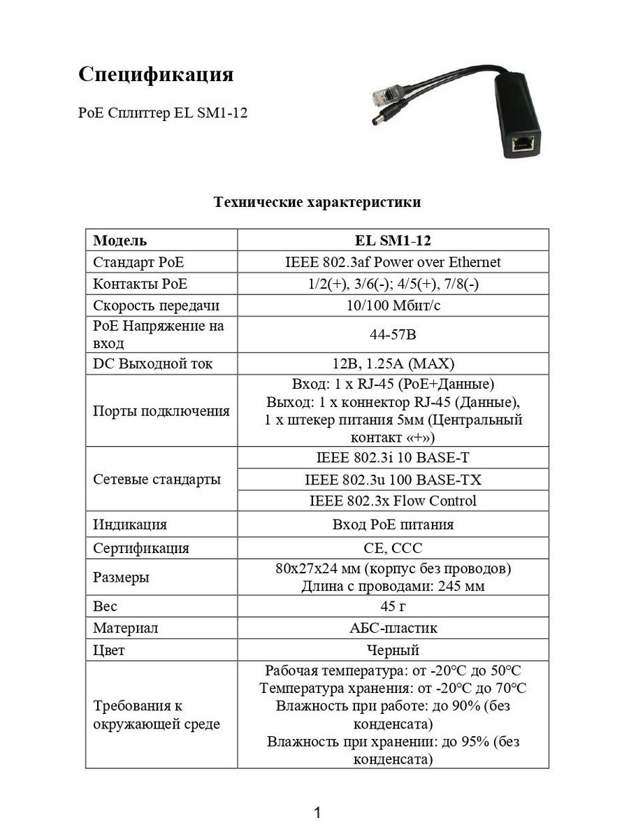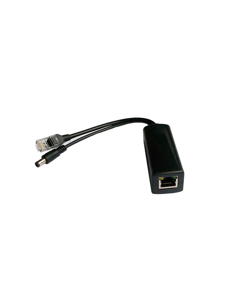 Сплиттер разделяет сигнал с витой пары RJ-45 (данные+питание) на отдельный канал данных RJ-45 и отдельный канал питания 5мм (12 В). Сплиттер позволяет запитать конечное устройство, которое не поддерживает PoE.