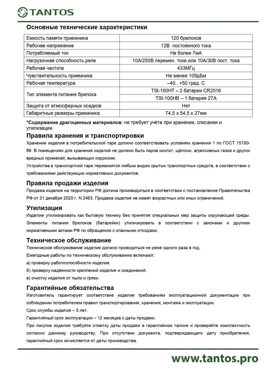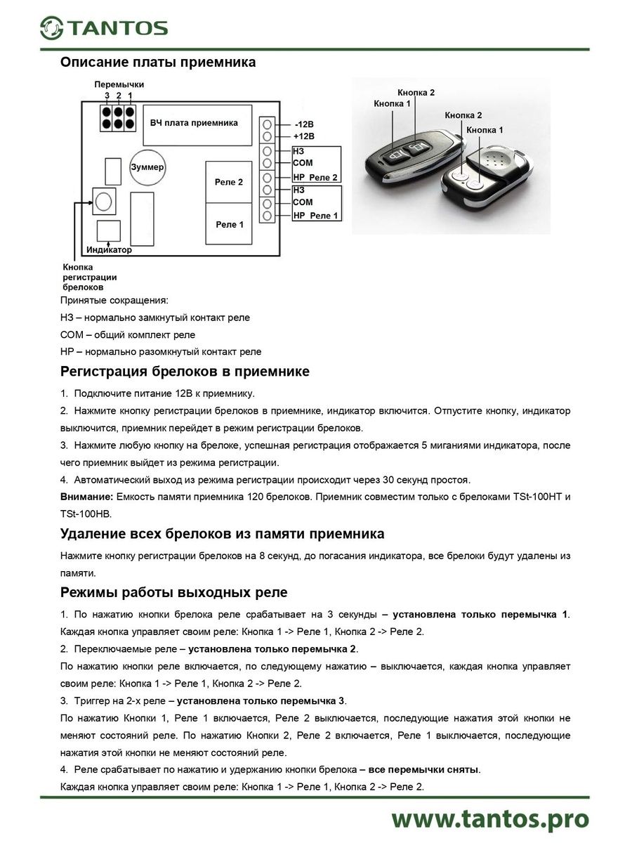 Количество регистрируемых брелоков: 120 брелоков с фиксированным кодом