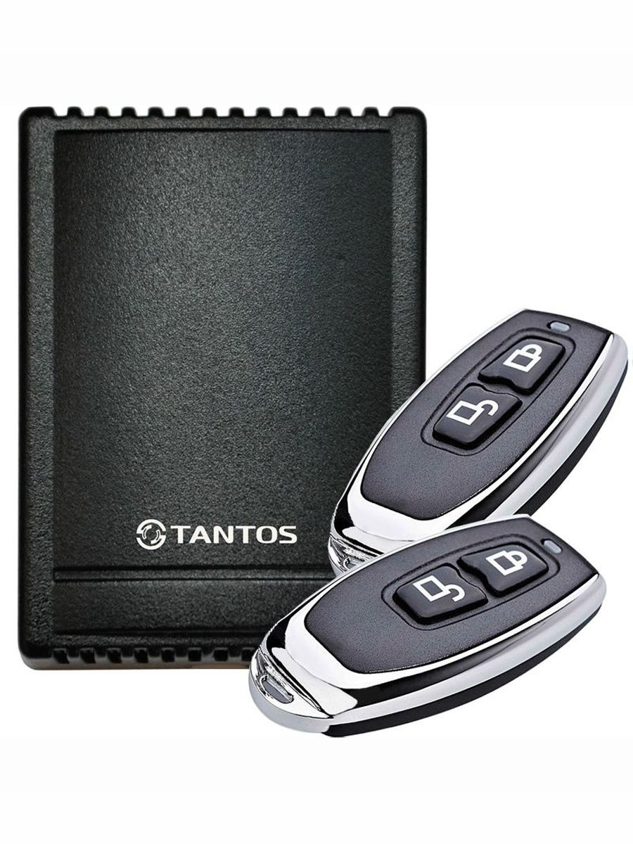 Комплект включает в себя 2-х канальный приёмник чёрного цвета и два миниатюрных передатчика (брелока)