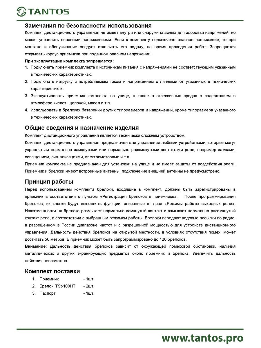Количество регистрируемых брелоков: 120 брелоков с фиксированным кодом