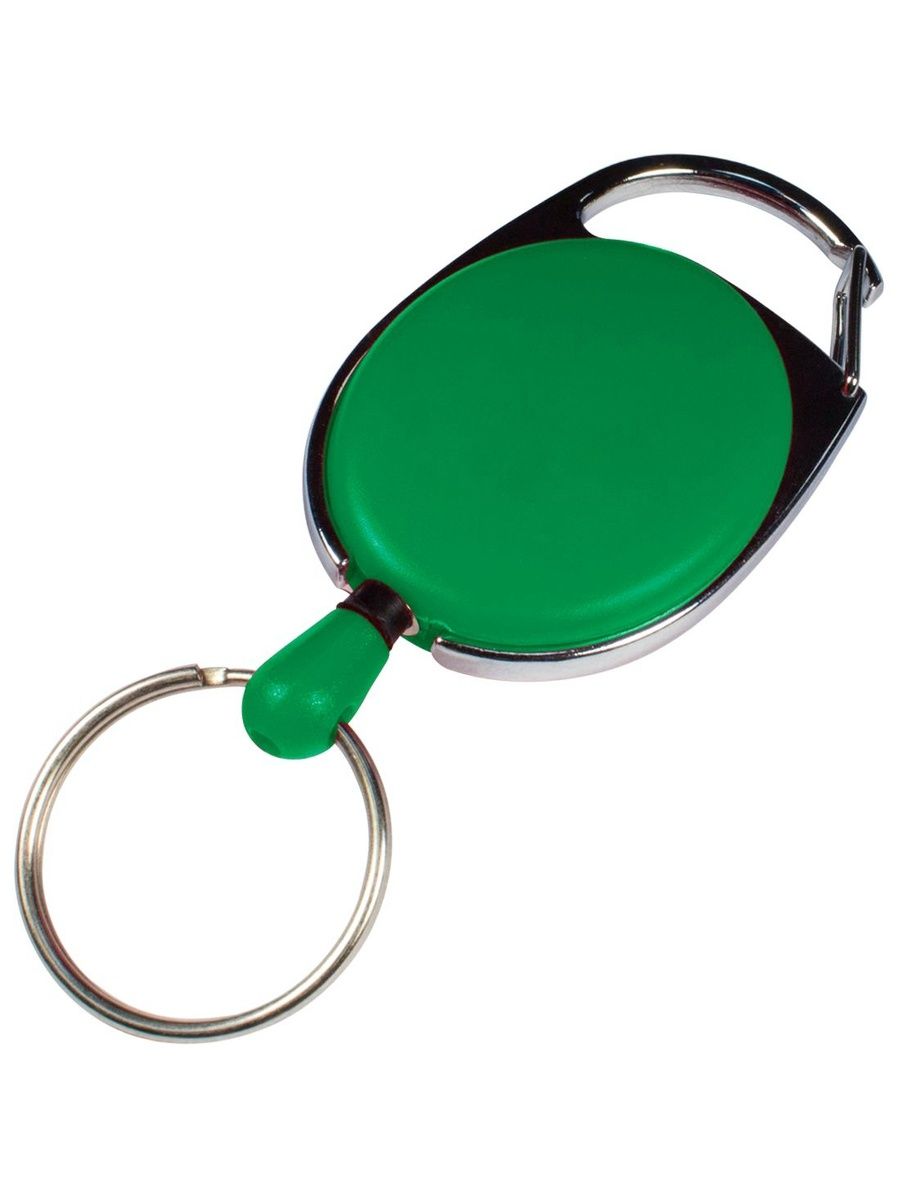 TANTOS TS-Retractor 02 - брелок-ретрактор для бейджей и проксимити карт, овальный, с металлическим карабином и кольцом для крепления бейджа или карты, цвет- зелёный. Предназначен для ношения бейджей и прокисимити карт и представляет собой брелок с вытяжной нитью, работающий по принципу катушки. Встроенный пружинный механизм возвращает нить после использования в исходное положение.