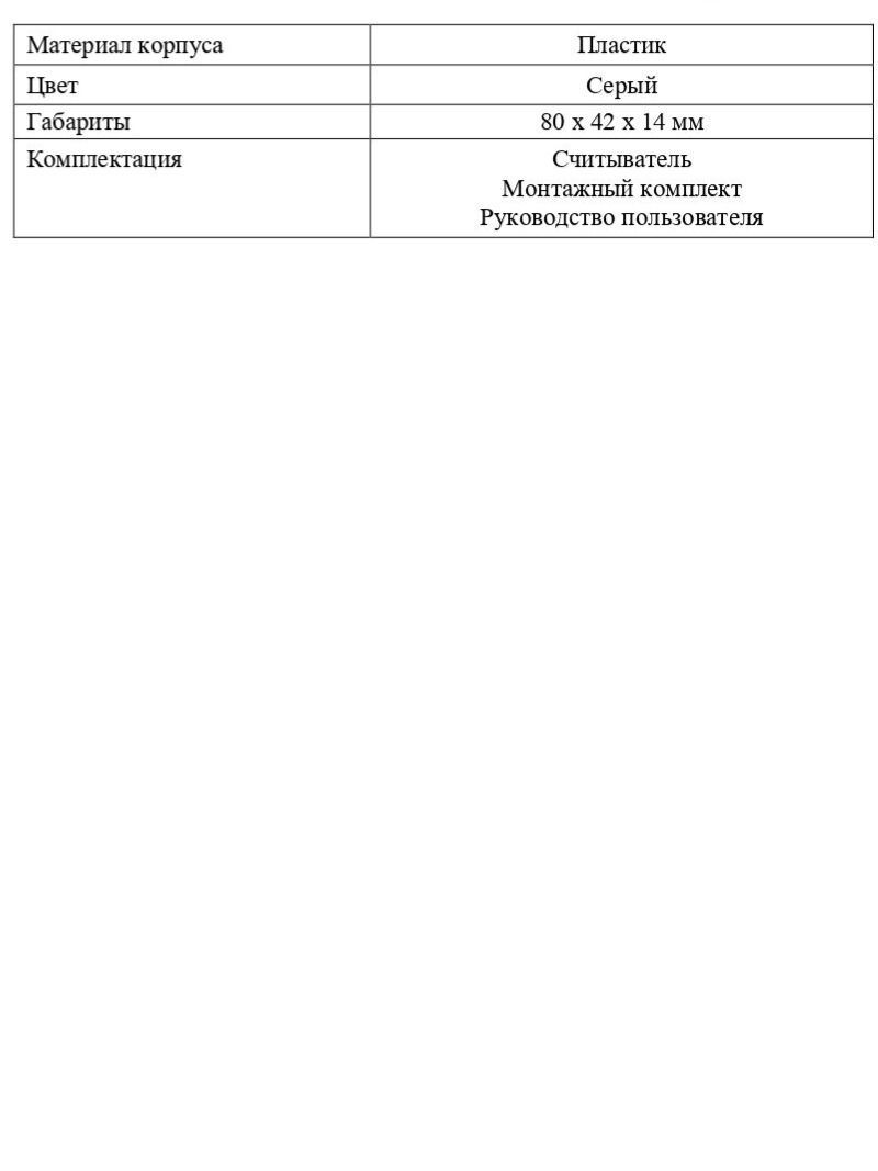 Комплектация Считыватель, монтажный комплект, руководство пользователя