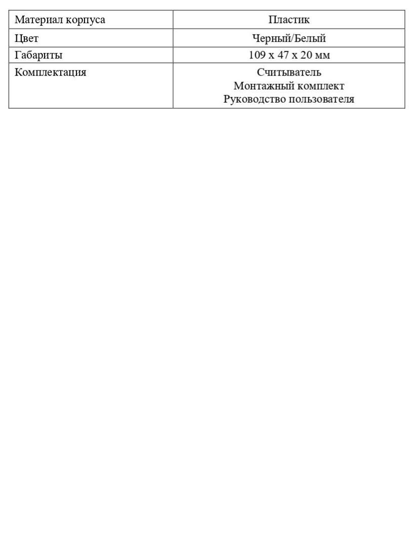 Комплектация Считыватель, монтажный комплект, руководство пользователя