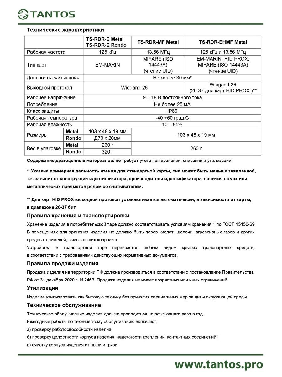 Считыватель TS-RDR-MF Metal производства компании Tantos