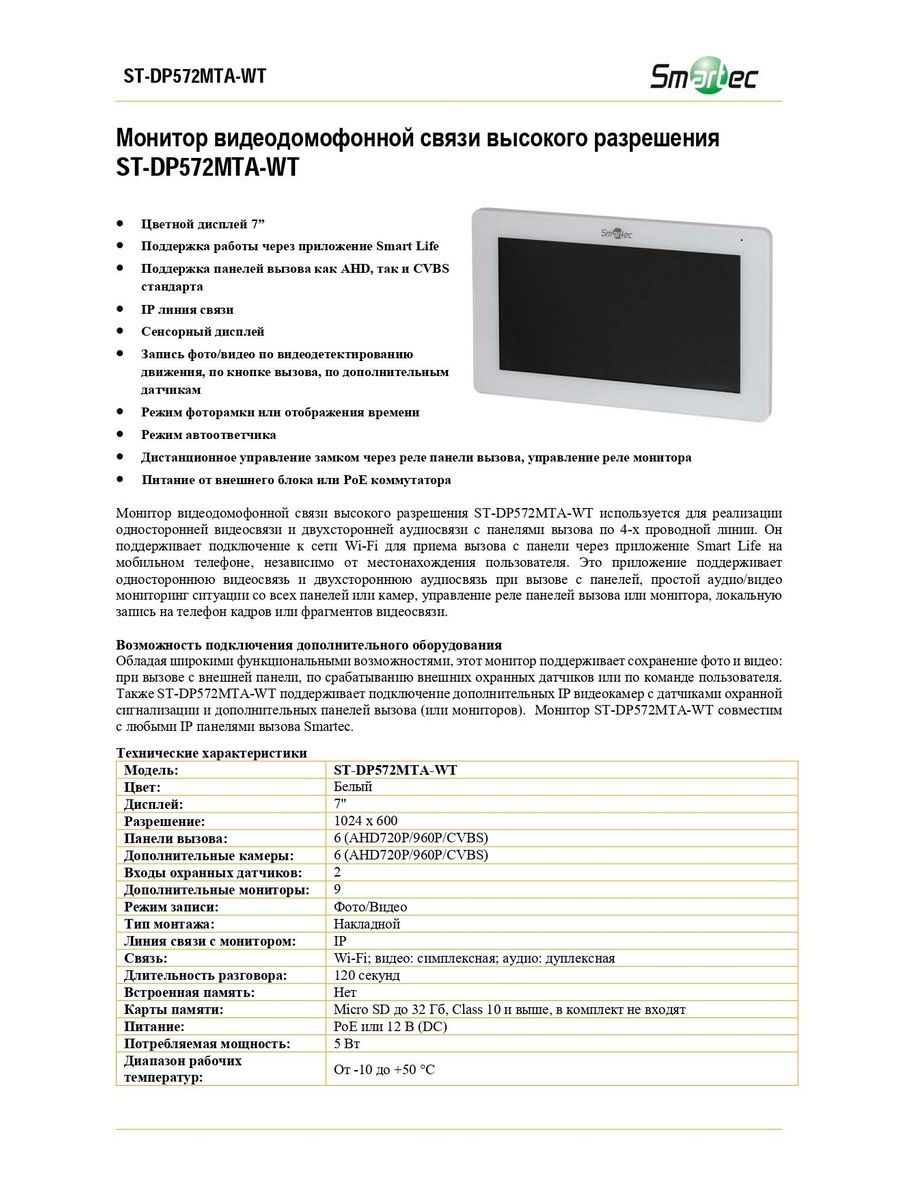 ST-DP572MTA-WT Монитор видеодомофона 7"