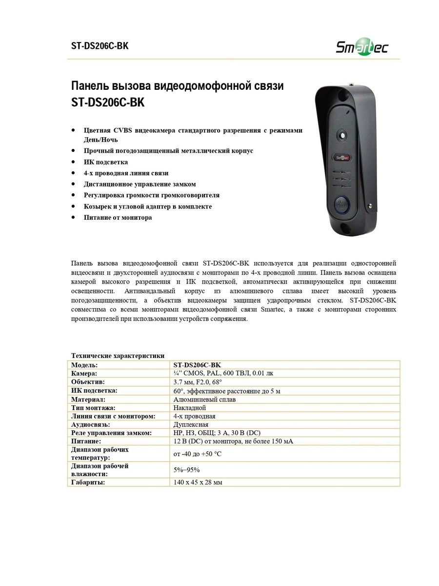 ST-DS206C-BK Панель вызова видеодомофонной связи