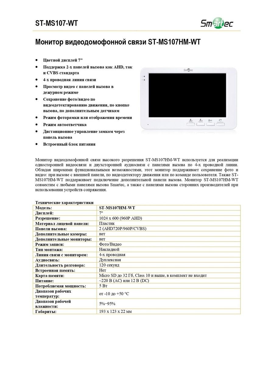 ST-MS107HM-WT Монитор видеодомофонной связи
