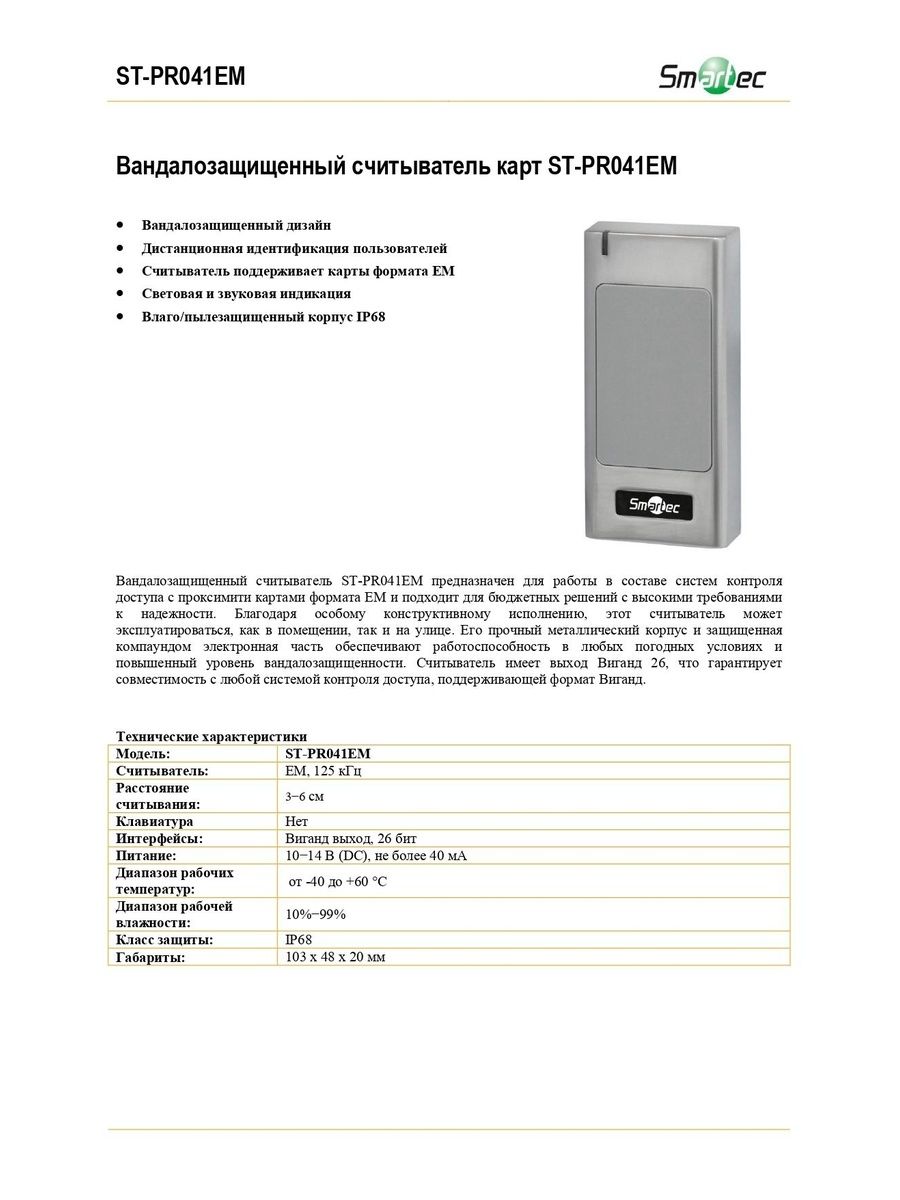 Вандалозащищенный считыватель ST-PR041EM предназначен для работы в составе систем контроля доступа с проксимити картами формата EM и подходит для бюджетных решений с высокими требованиями к надежности. Этот считыватель может эксплуатироваться, как в помещении, так и на улице.