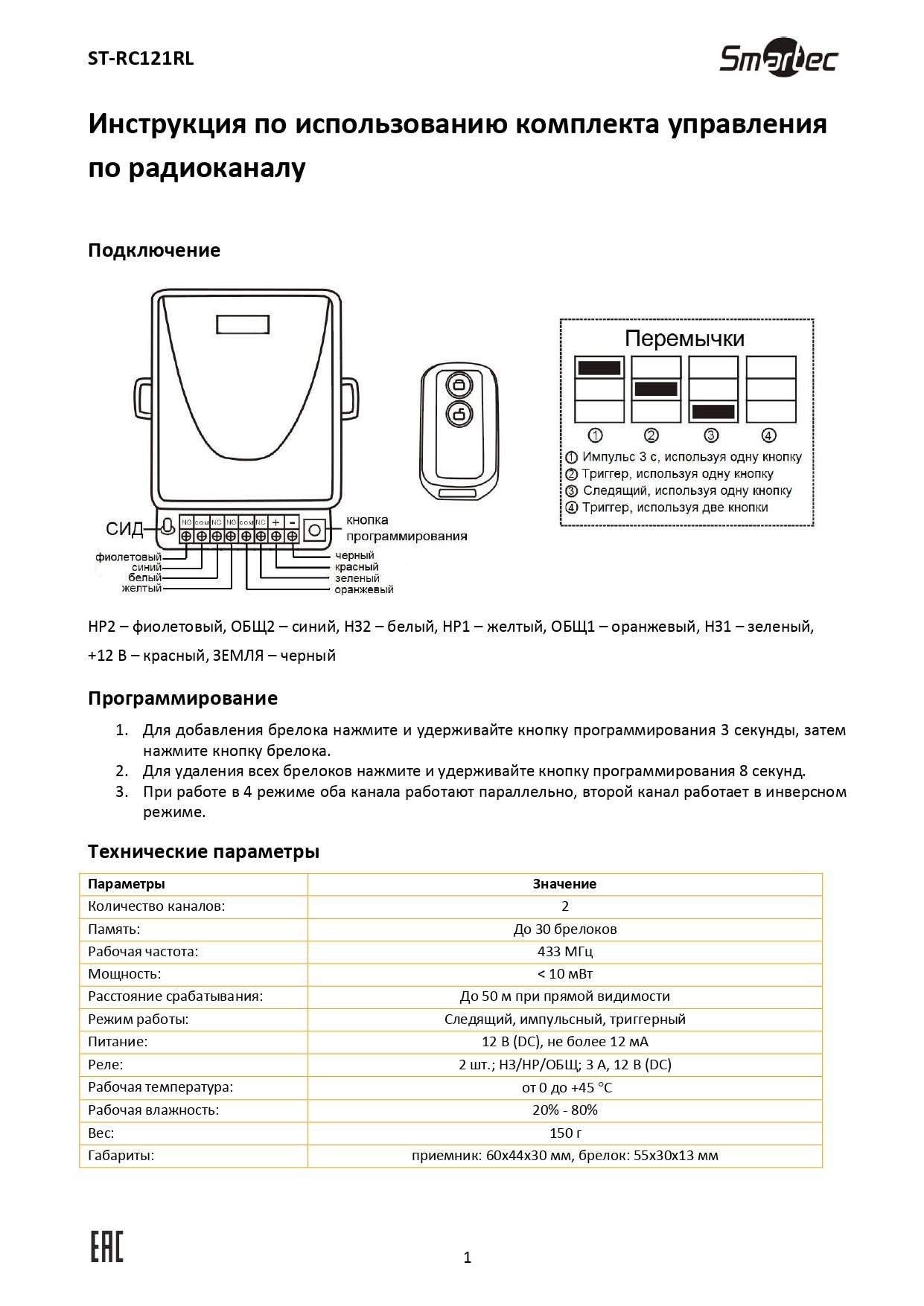 ST-RC121RL Комплект управления по радиоканал