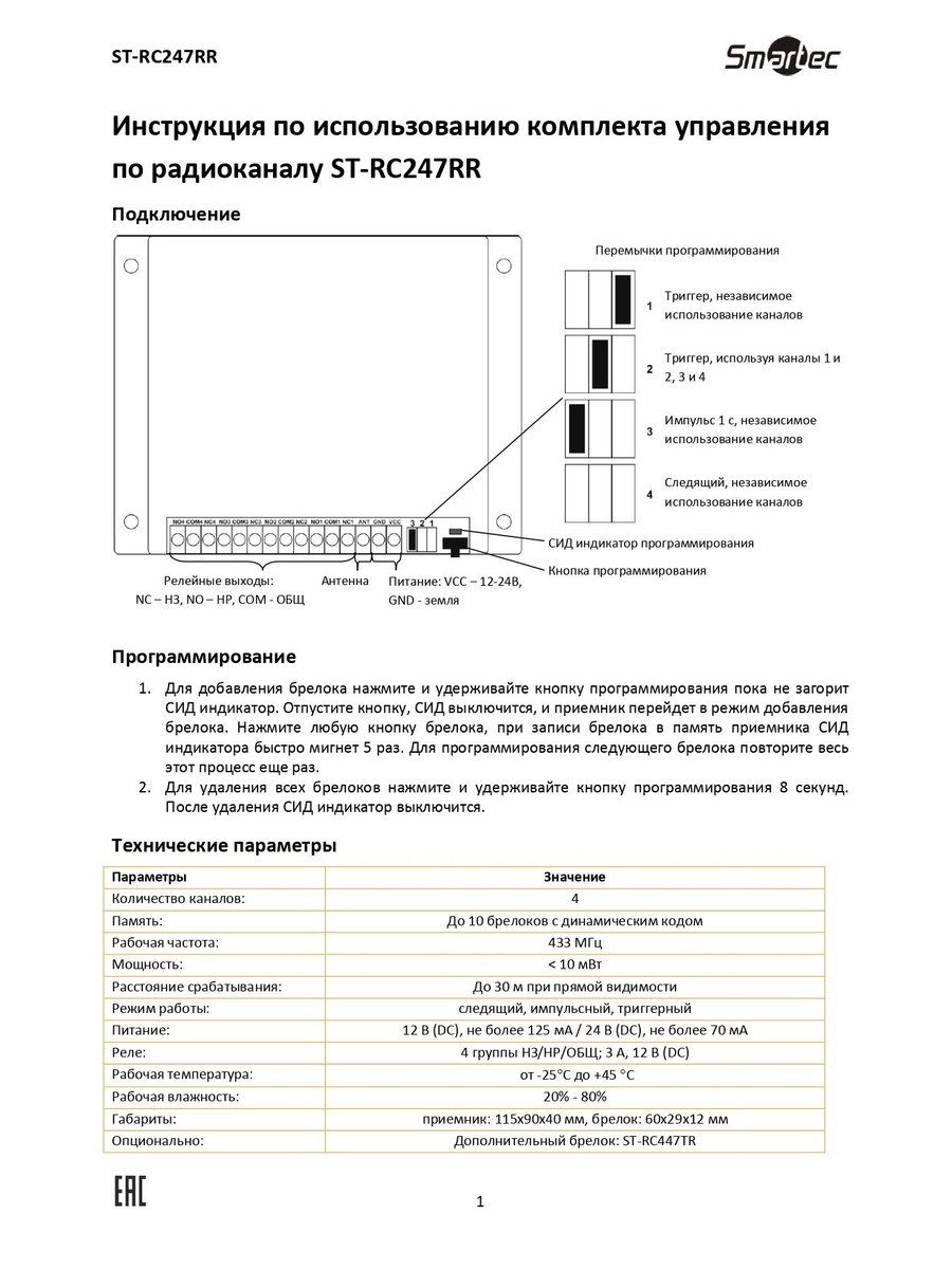 ST-RC247RR Комплект управления по радиоканалу