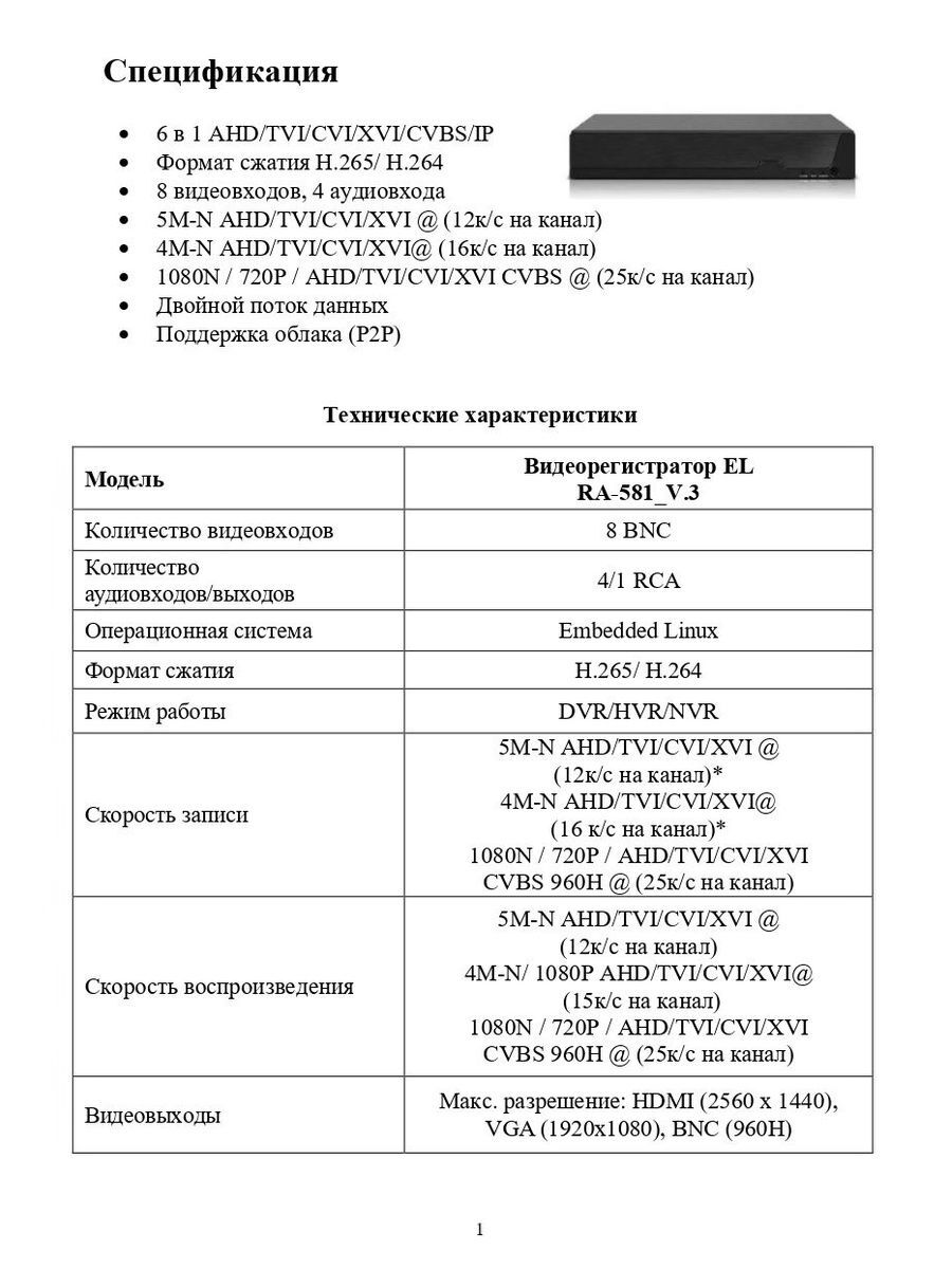 Цифровой гибридный видеорегистратор EL RA-581_V.3
