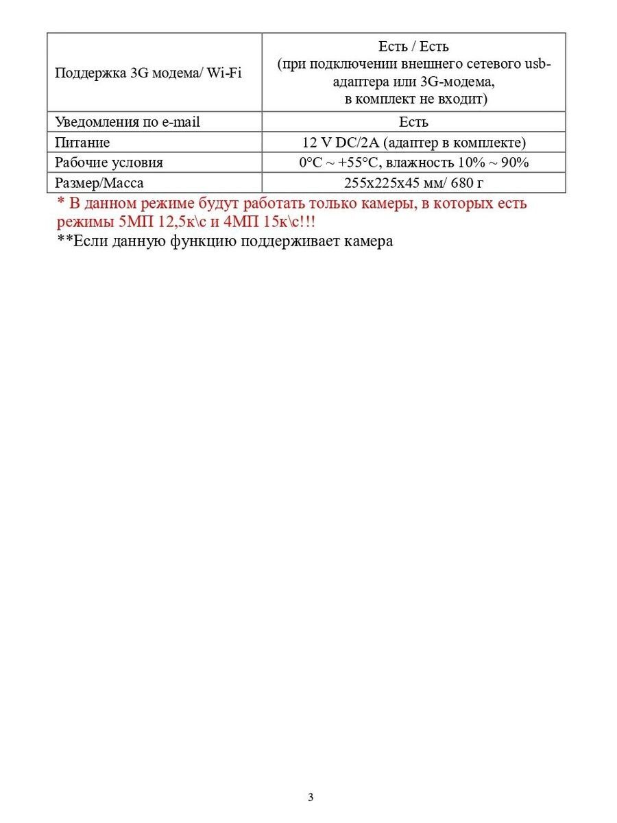 Расшифровка * * В данном режиме будут работать только камеры, в которых есть режимы 5МП 12,5к\с и 4МП 15к\с!!! **Если данную функцию поддерживает камера