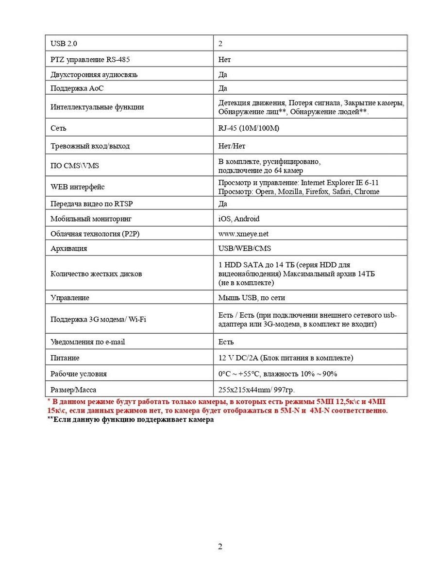 Расшифровка * * В данном режиме будут работать только камеры, в которых есть режимы 5МП 12,5к\с и 4МП 15к\с, если данных режимов нет, то камера будет отображаться в 5M-N и 4M-N соответственно. **Если данную функцию поддерживает камера