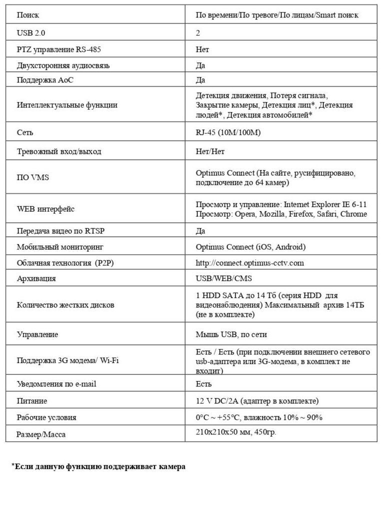 Интеллектуальные функции Детекция движения, Потеря сигнала, Закрытие камеры, Детекция лиц*, Детекция людей*, Детекция автомобилей*