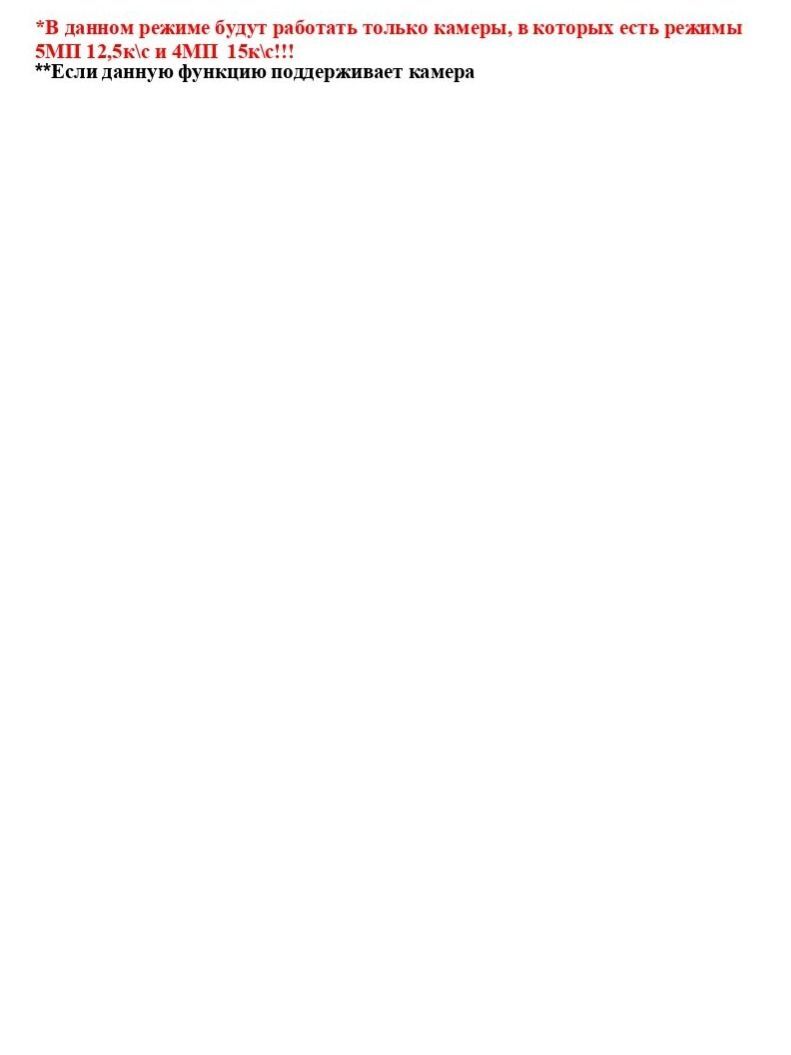 Расшифровка * *В данном режиме будут работать только камеры, в которых есть режимы 5МП 12,5к\с и 4МП 15к\с!!! **Если данную функцию поддерживает камера
