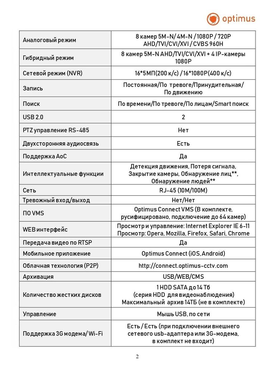 Поддерживает режим работы пентаплекс: мониторинг, запись, просмотр, архивирование, удаленное управление. Резервное копирование может производиться через USB, WEB, CMS.