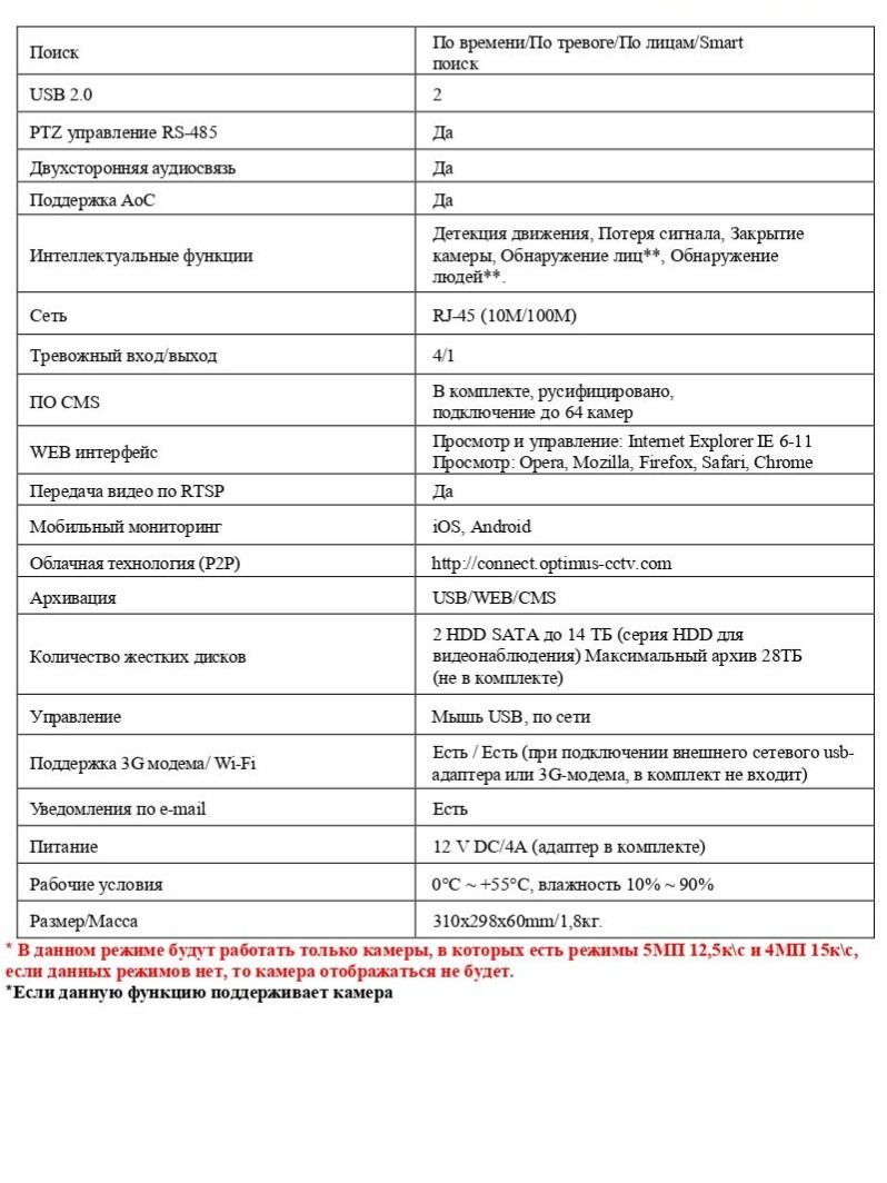 Расшифровка * * В данном режиме будут работать только камеры, в которых есть режимы 5МП 12,5к\с и 4МП 15к\с, если данных режимов нет, то камера отображаться не будет. **Если данную функцию поддерживает камера