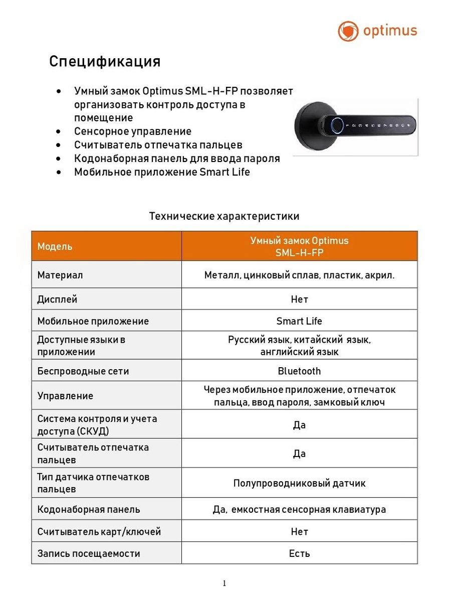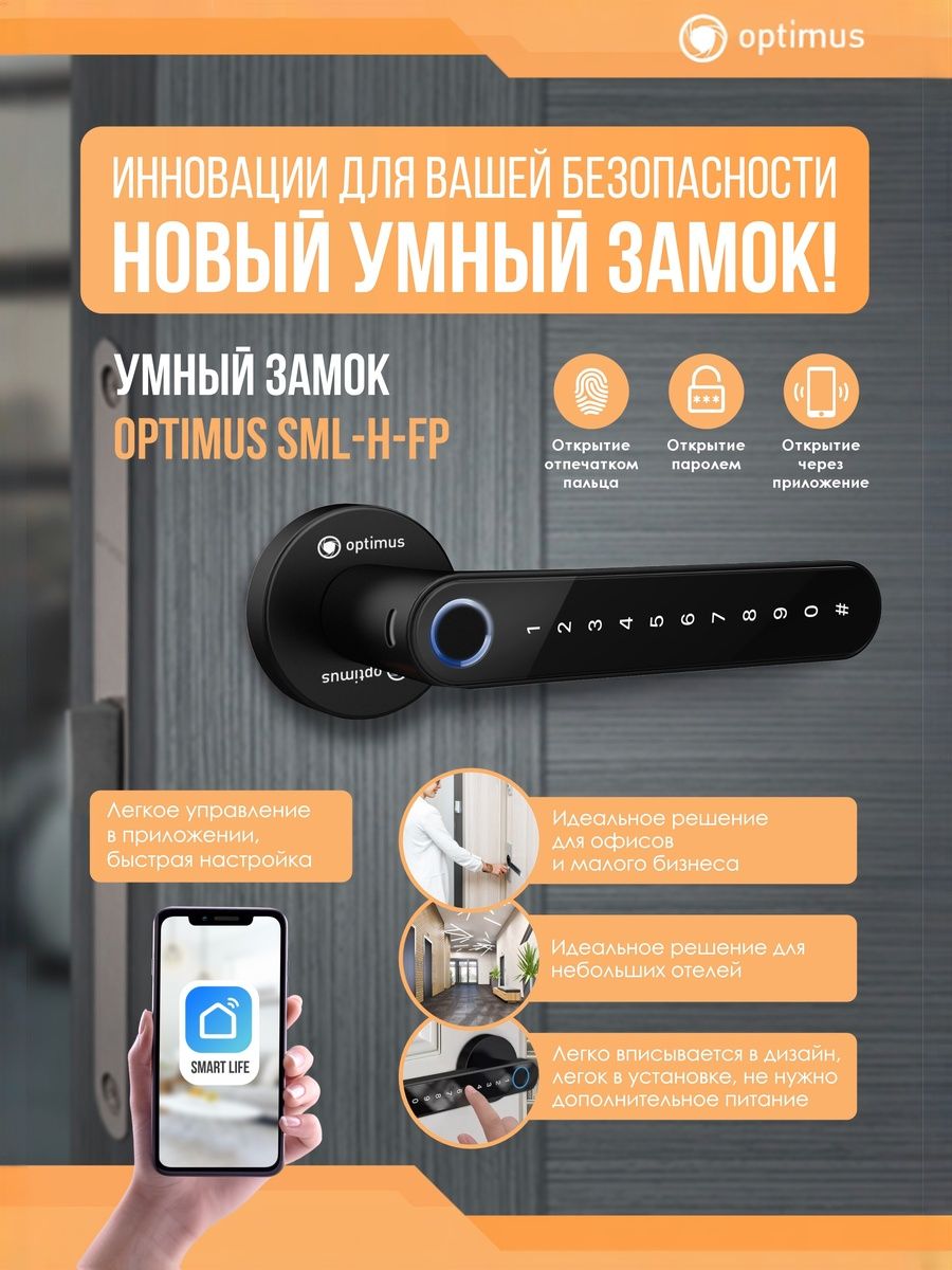 Умный замок Optimus SML-H-FP подходит для пользования в помещениях: