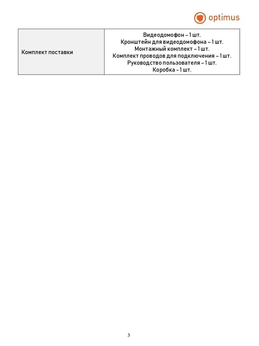 Комплектация Видеодомофон – 1 шт.; Кронштейн для видеодомофона – 1 шт.; Монтажный комплект – 1 шт.; Комплект проводов для подключения – 1 шт.; Руководство пользователя – 1 шт.; Коробка - 1 шт.