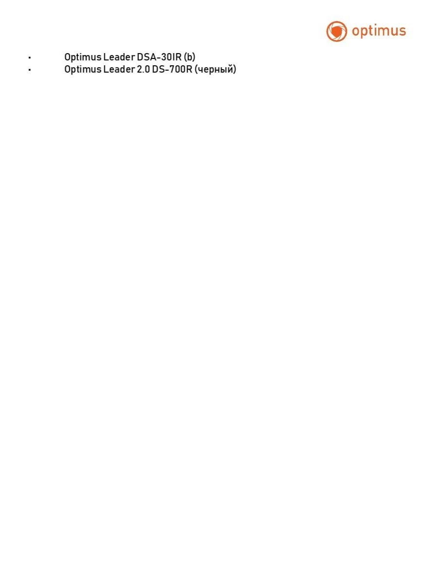 Расшифровка* Данная модель видеодомофона совместима со следующими моделями вызывных панелей Optimus: • Optimus Leader DSA-30IR (b) • Optimus Leader 2.0 DS-700R (черный)
