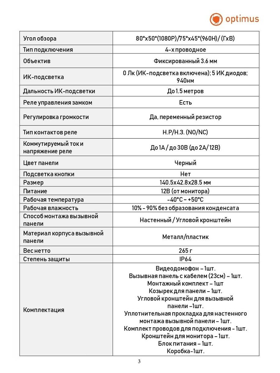 Видеодомофон Optimus ECO IK-34B30I (w+b) — это комплект из цветного монитора и вызывной панели, предназначенный для частных домов и квартир.