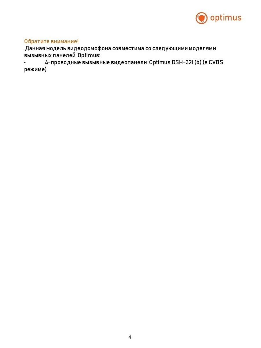 Совместимые вызывные панели 4-проводные вызывные видеопанели Optimus DSH-32I (b) (в CVBS режиме)