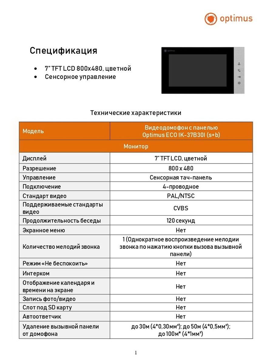Видеодомофон Optimus ECO IK-37B30I (s+b) — это комплект из цветного монитора и вызывной панели, предназначенный для частных домов и квартир.