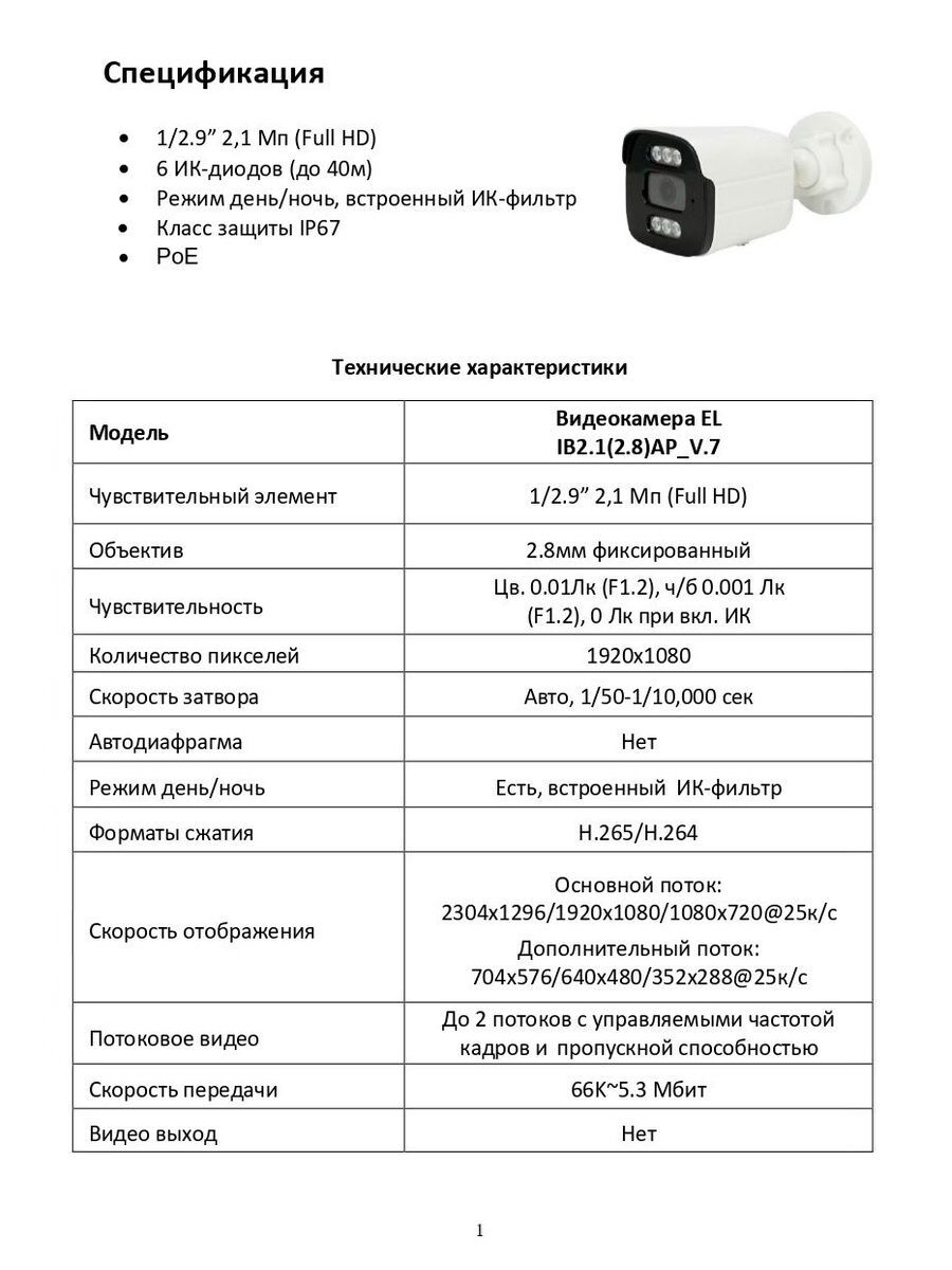 Уличная IP-видеокамера EL IB2.1(2.8)AP_V.7 создана на основе 1/2.9” матрицы, разрешением 2.1 Мп