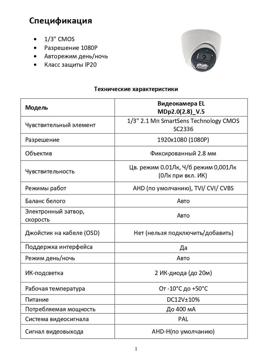 Режимы работы AHD (по умолчанию), TVI/ CVI/ CVBS