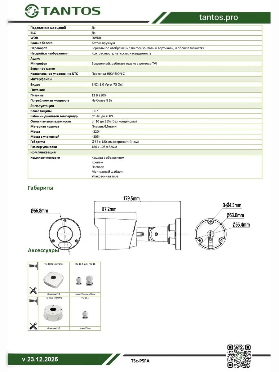 Габариты Ø 67 x 180 мм (с кронштейном)