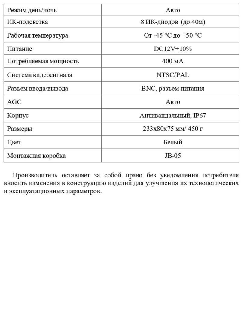 При работе доступны функции настройки автоматического баланса белого, 2D и 3D DNR, AGC, D-WDR. Благодаря им изображение с камеры будет наилучшего качества. Питание камеры - DC12V (400мА). Управление возможно при помощи джойстика через экранное меню.
