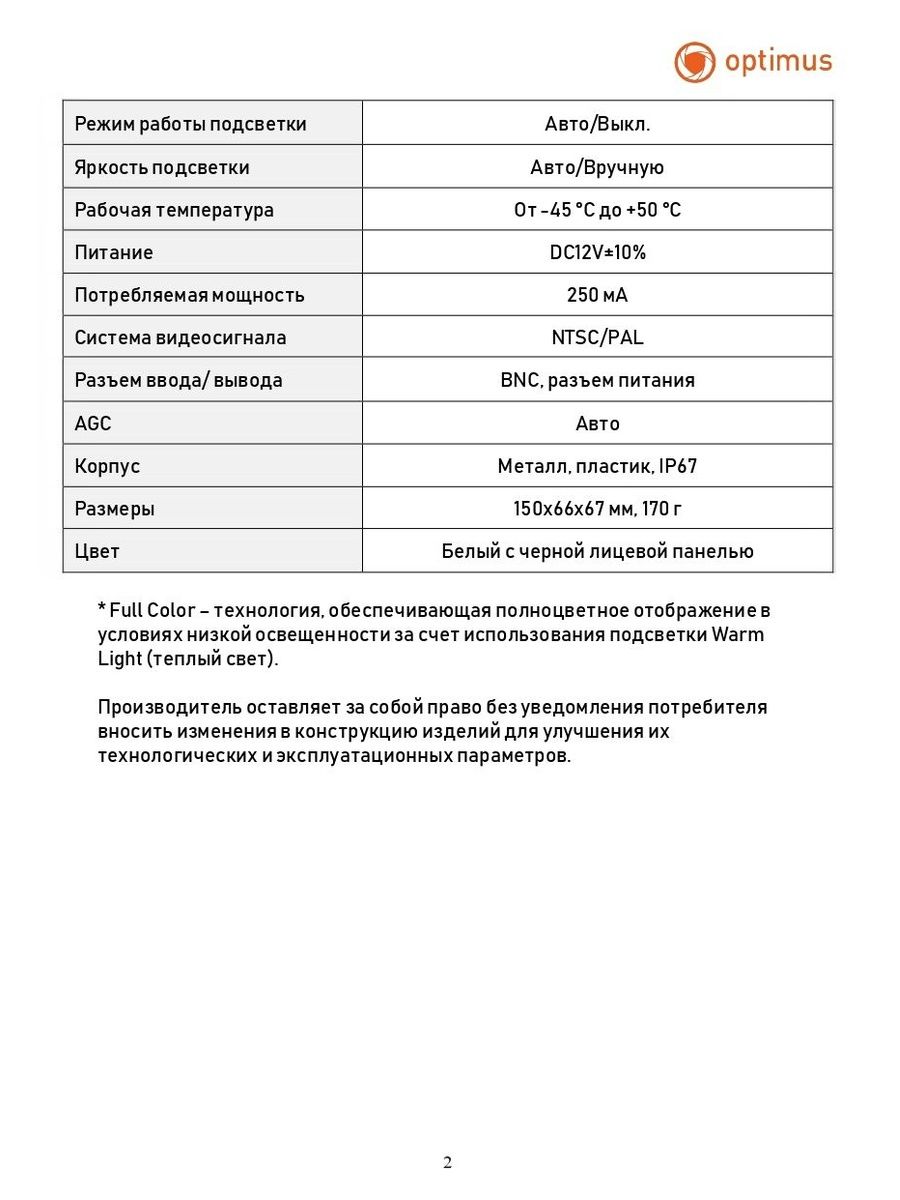 Расшифровка *Full Color – технология, обеспечивающая полноцветное отображение в условиях низкой освещенности за счет использования подсветки Warm Light (теплый свет).