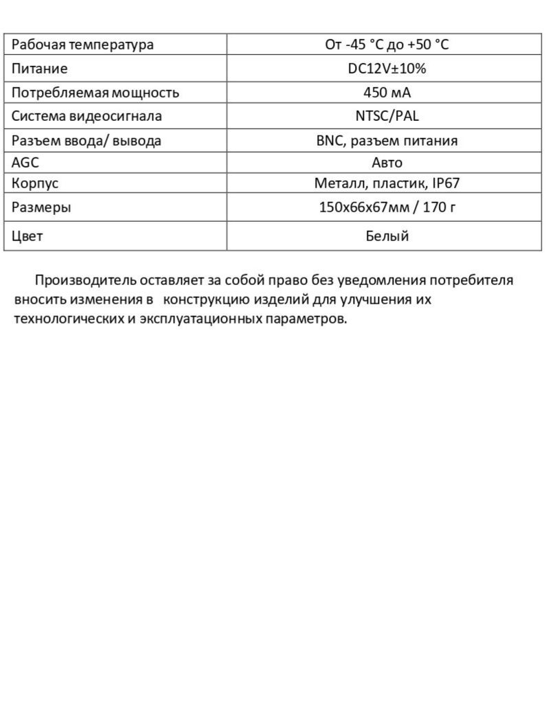 Питание камеры - DC12V±10%. Управление возможно при помощи джойстика через экранное меню.