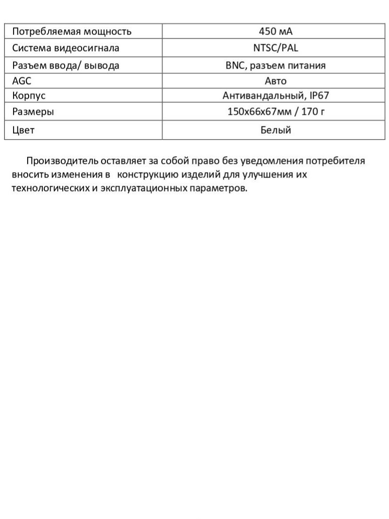 Режимы работы AHD/TVI/CVI – 8MP@15к/с; CVBS(960H)@25к/с
