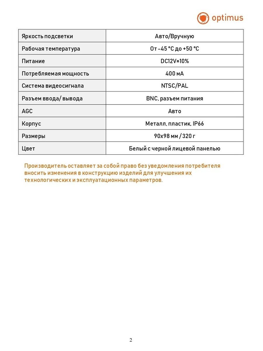 При работе доступны функции настройки автоматического баланса белого, 2D и 3D DNR, AGC. Питание камеры - DC12V±10%.
