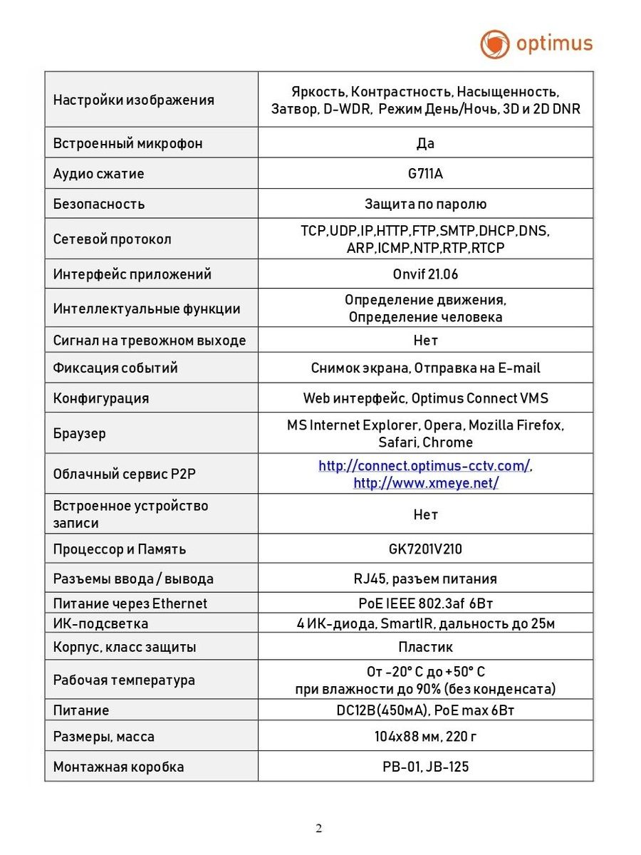Видеокамера Optimus ECO IP-022.1(2.8)MP
