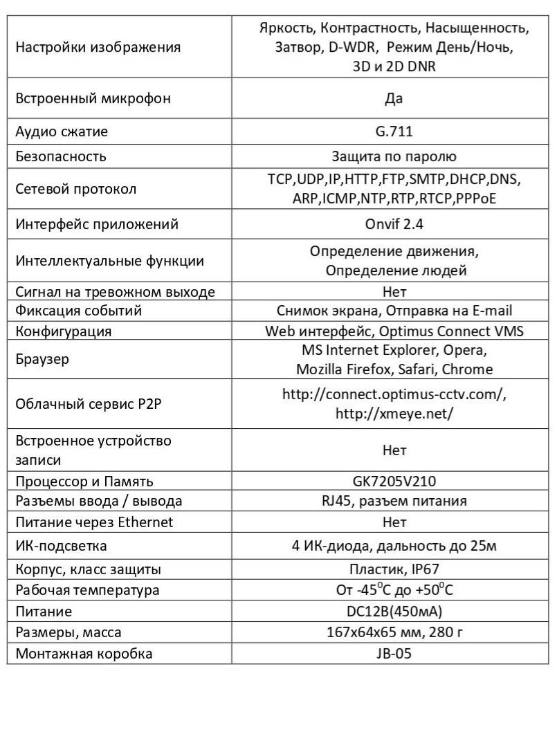 Видеокамера совместима с монтажной коробкой Optimus JB-05.