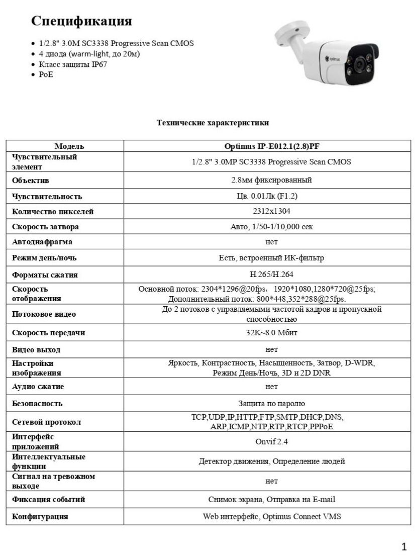 Видеокамера Optimus IP-E012.1(2.8)PF