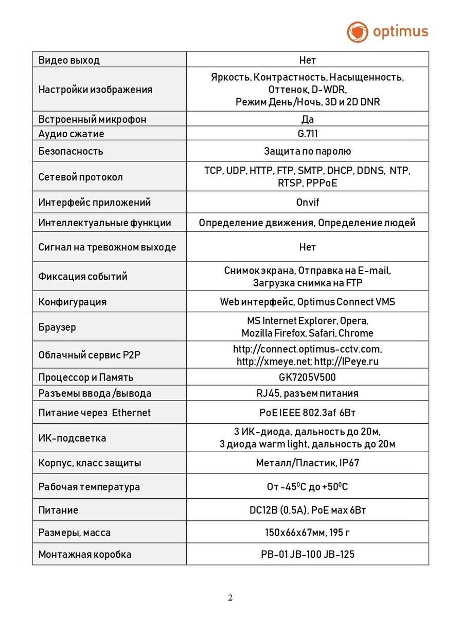Видеокамера Optimus IP-E014.0(2.8)MPL_V.1